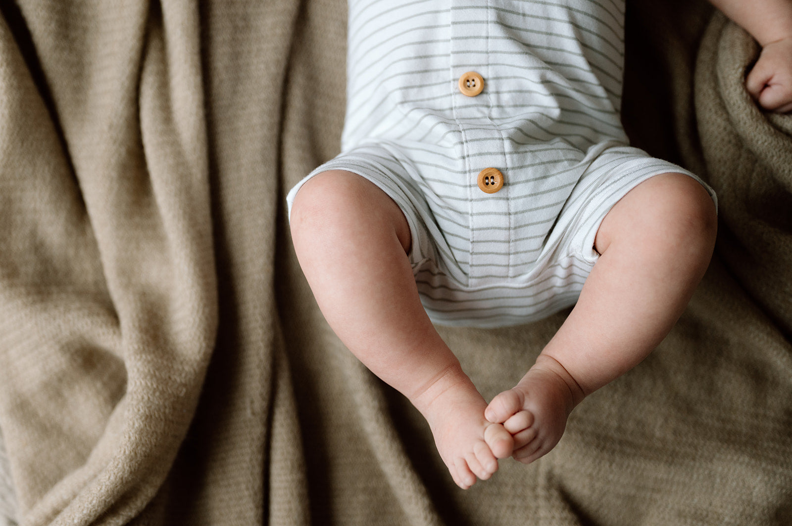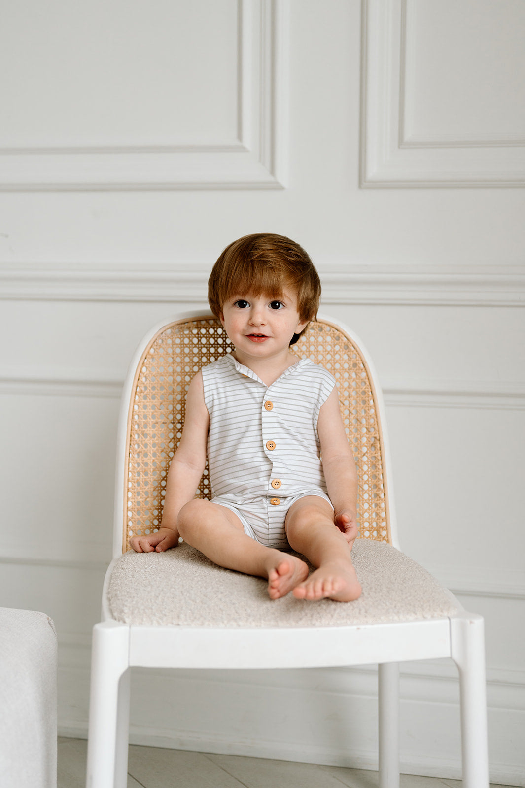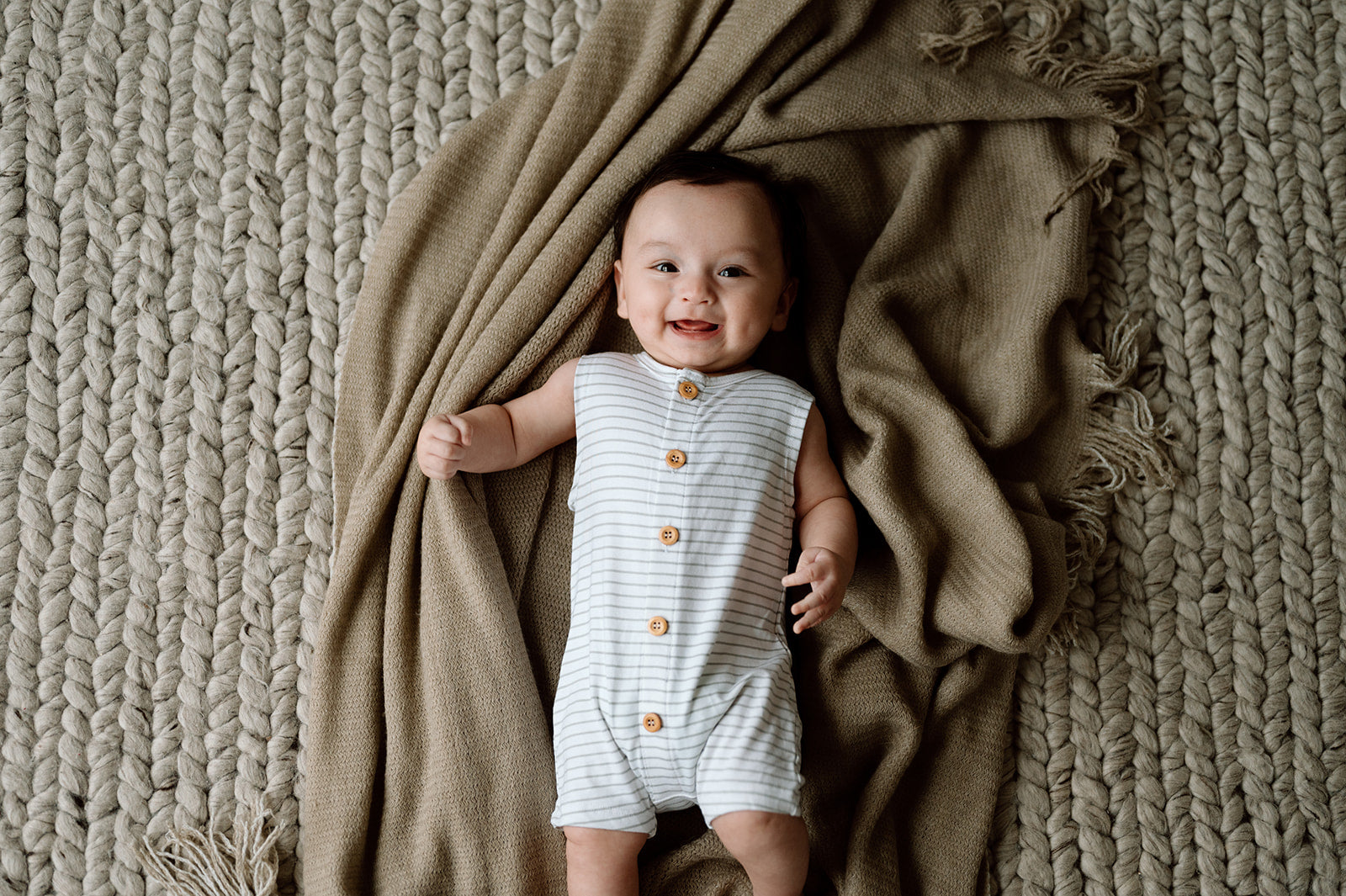Striped Sage & White Button Front, Sleeveless, Super Soft Romper
