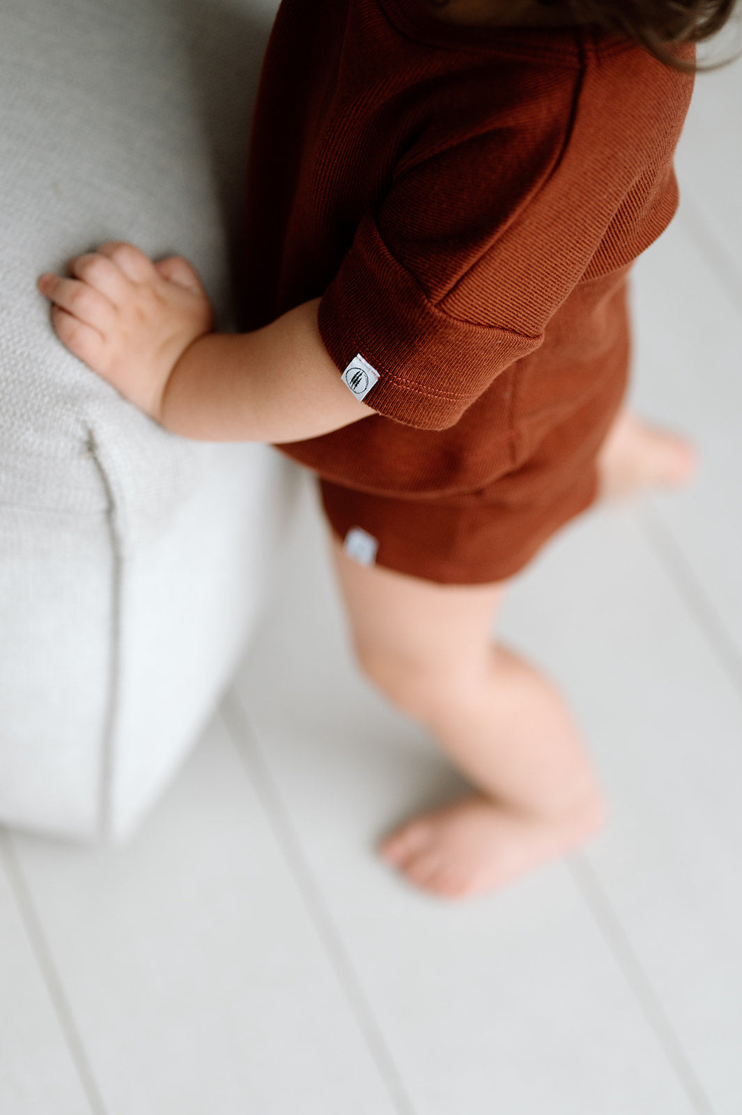 Children & Babies Cute Knit Short Set In Stunning Chestnut