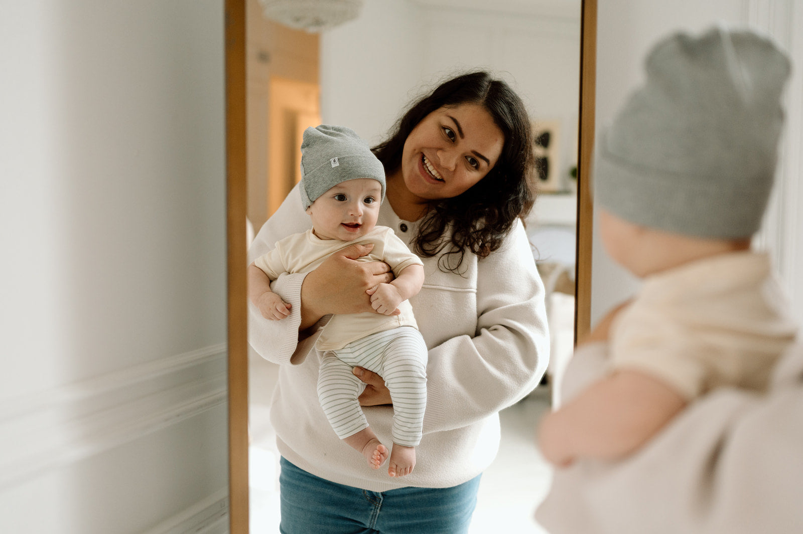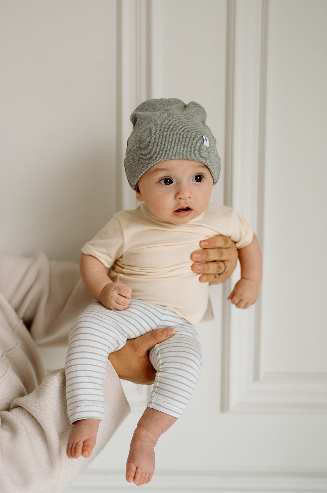 Thick, Snug, Cold Weather Beanie For Babies & Children In Light Grey.