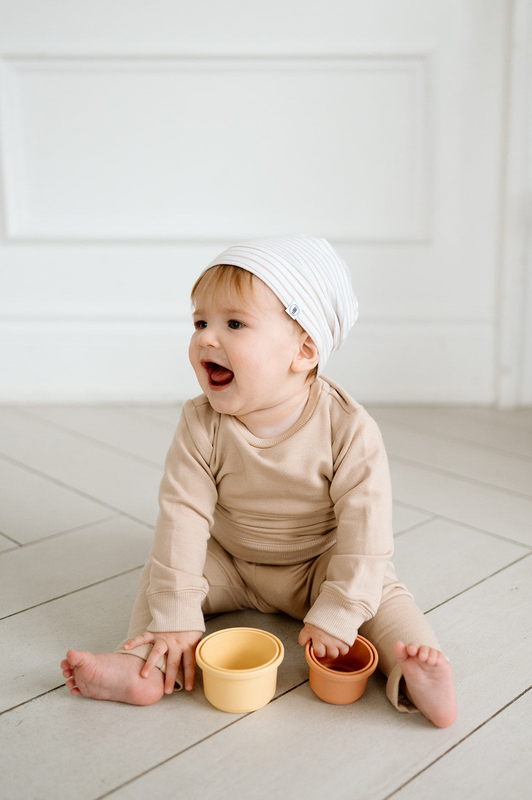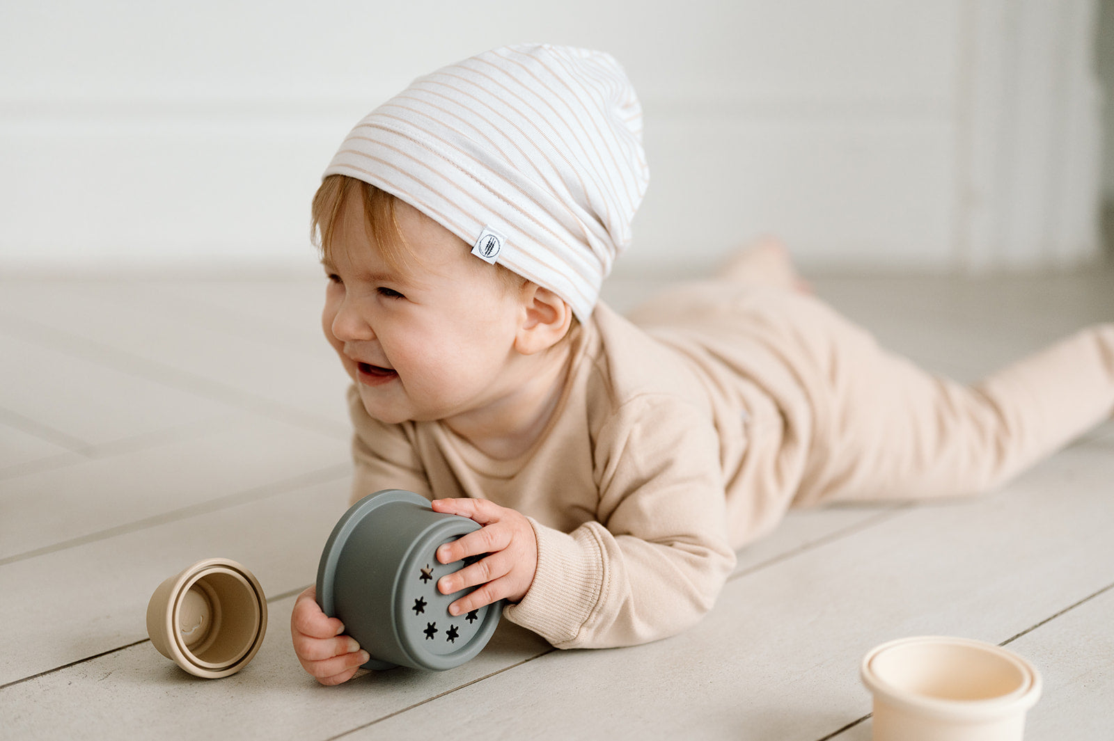 Lightweight Striped Beanie - Neutral Tan