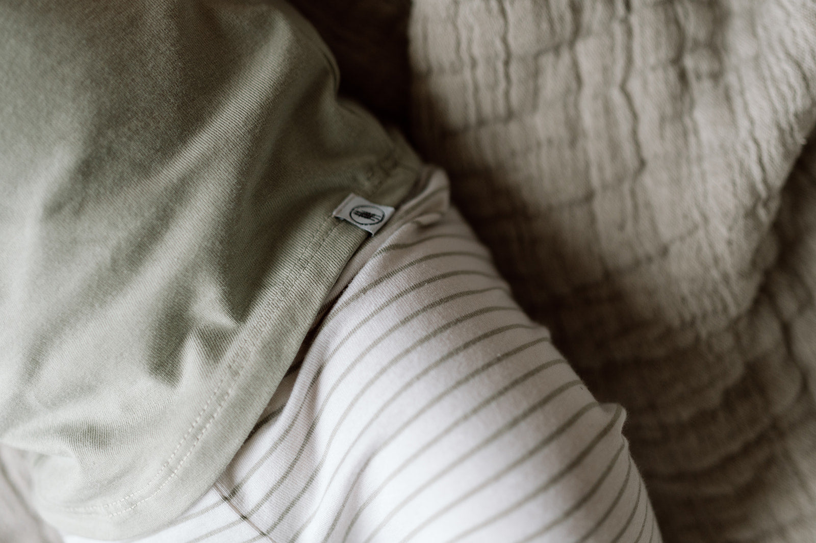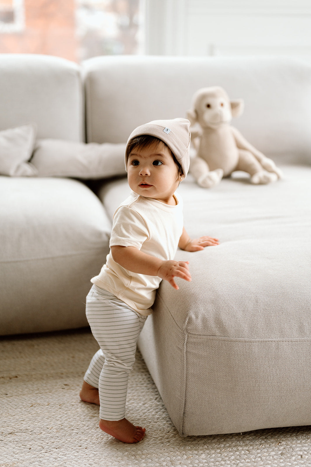 Lightweight, Wide Waistband, Striped Sage & White Leggings For Children & Babies